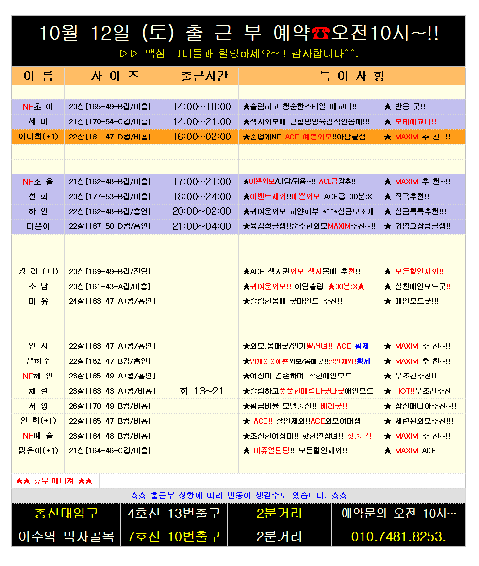 출근 확정이 아니라 변동이 있습니다. 참고만 해주시면 됩니다. 감사합니다. ^^